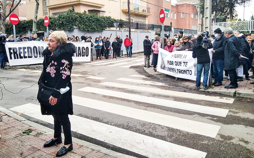 Familiares y amigos de Santiago Sánchez Cogedor se concentraron a escasos metros de la Embajada de Irán en España, -donde les dejó la Policía Nacional en la calle Jerez-, para pedir su pronta liberación. Su madre, Celia Cogedor había acudido un par de días antes para entregar al embajador, Hassan Ghashghavi, el mismo manifiesto que leyó el domingo 18 de diciembre, y éste la invitó a una reunión donde se tomaron un té para interesarse por la historia del aventurero complutense, lo que da esperanza a sus seres queridos para que colabore en las gestiones oportunas para su retorno a casa lo antes posible.