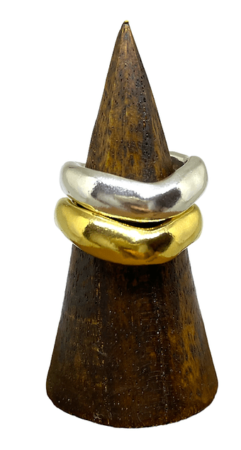 Ahora mismo en la colección nueva ‘Fluir’ que acabo de lanzar hace muy poquito. Hay dos anillos que a lo mejor te pueden parecer muy similares pero son todo lo contrario, muy diferentes uno del otro. El anillo Fluir son líneas orgánicas muy sutiles y pulidas en cambio el anillo Brotar aunque también tenga esa líneas orgánicas, tiene todas sus formas forjadas con martillo y muy abruptas. Te diría que ahora mismo yo si siento que las joyas se llevan mucho más con líneas mas orgánicas y no tan geométricas como antes.