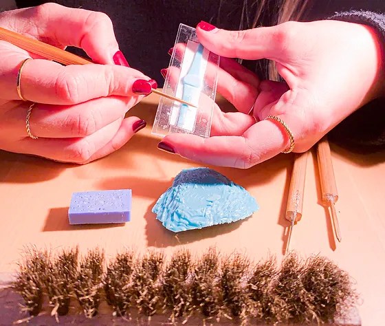 R. Aproveché un mercado artesanal que hicieron en mi pueblo para poner puesto con cositas de bisutería y con lo que gané me compré mi actual mesa de joyería, un soplete, lijas, limas, una segueta y varias más. Así empecé mi aventura como joyera, al principio hacia cosas muy simples y sobre todo joyas para mi, ya que quería ver si todo lo que yo me hacía en plata me daba alergia como cuando era pequeña. Finalmente, nada de lo que me fabricaba en plata yo misma me daba alergia, eso fue un gran aliciente para seguir creando joyas. Sabía que hay muchas personas que le sigue pasando eso. Al principio fue todo más por hobbie que como proyecto a largo plazo. Yo trabajaba de auxiliar en una clínica dental y tampoco disponía del tiempo para invertir mi 100% en la joyería. Pero todo lo que iba creando gustaba y ahí fue donde vi la posibilidad de negocio. Abrí mi propia página web, un instagram y un facebook. Me lancé a esto de emprender, eso que suena tan fácil. Cuando tuve claro que me quería dedicar al 100% a mi marca me seguí formando e hice un curso de engastado, varios cursos de ceras y el por último, un curso de diseño 3D para joyería.
