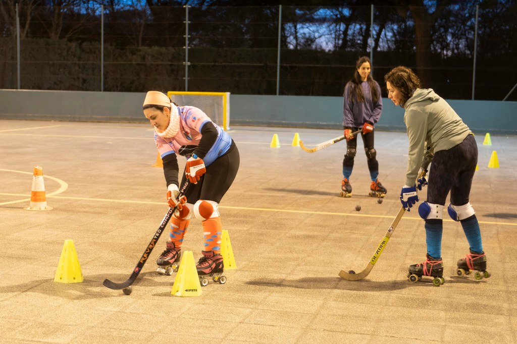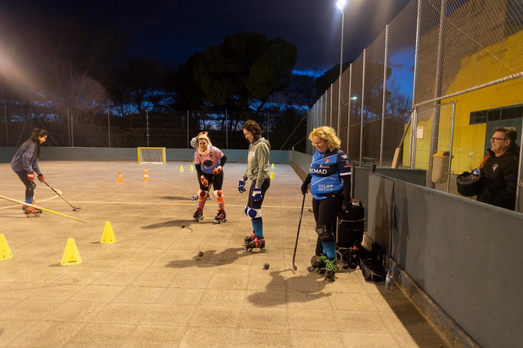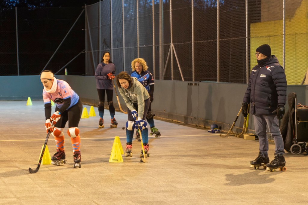 Los Veteranos del Hockey Patín Alcalá entrenan los viernes en las Pistas del Val. Los equipos de veteranos no se saltan ningún entreno a pesar de las temperaturas gélidas de estos días.