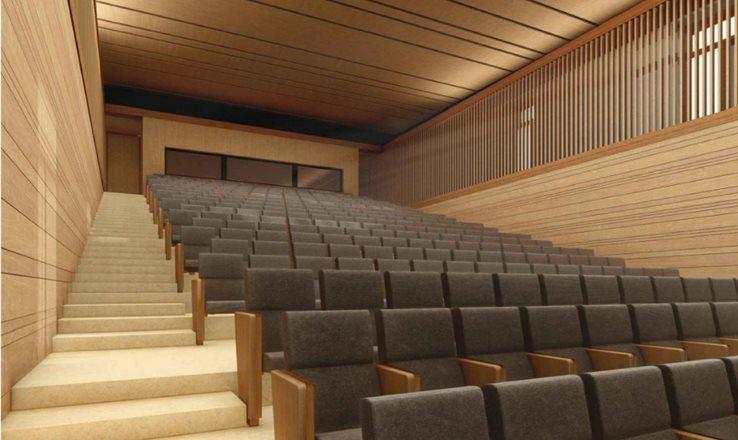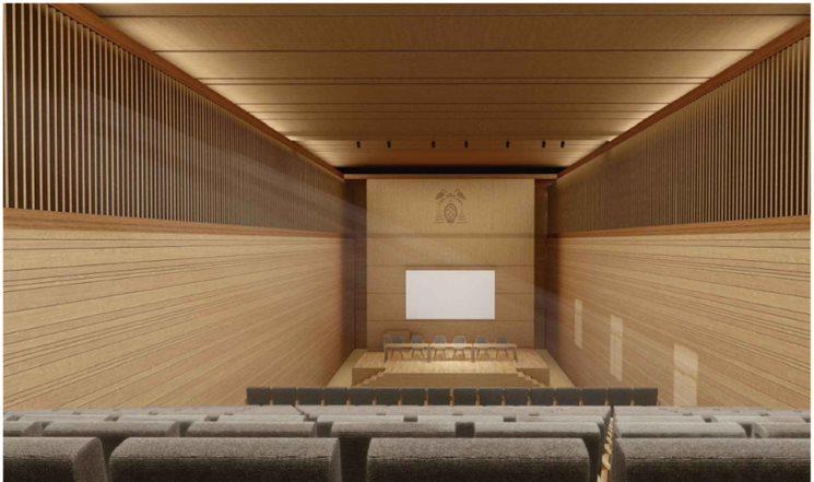 Los nuevos elementos introducidos por el proyecto, tales como las aulas y salas de trabajo, el auditorio y las escaleras, se armonizan mediante el uso de la madera como material principal.