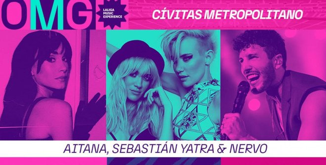 Las entradas para OMG! LaLiga Music Experience ya están a la venta para el público general con precios que oscilan entre los 49,99 euros (más gastos de gestión) y los 259,99 euros, esta última con sitito en el ‘fronstage’ y ‘Meet & Greet’ con Sebastián Yatra.