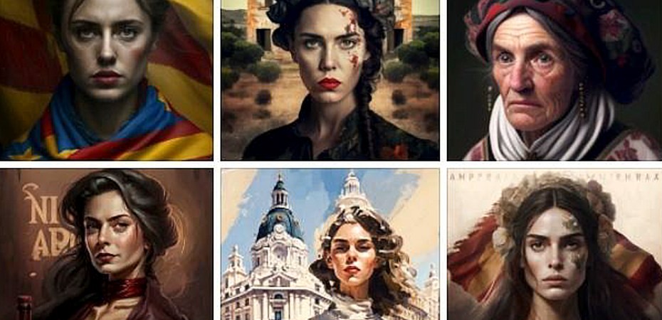 Excepto Galicia, que parece una meiga, y Castilla-La Mancha, que es el espejo de Aldonza Lorenzo alias Dulcinea, las demás parecen jóvenes misses. Entre las más polémicas, la catalana a la que representa como independentista con una bandera estelada, la extremeña que tiene sangre en la cara quizá haciendo referencia a sus típicas matanzas (del cerdo), la muchacha riojana no se separa de la botella de vino, la aragonesa parece integrante de la tribu de mujeres jirafa de no ser porque en la cabeza se aprecia la Basílica del Pilar y la valenciana es como un personaje manga junto a la Ciudad de las Artes y las Ciencias. Ella y la urbanita madrileña son las únicas rubias del ‘mapa’.