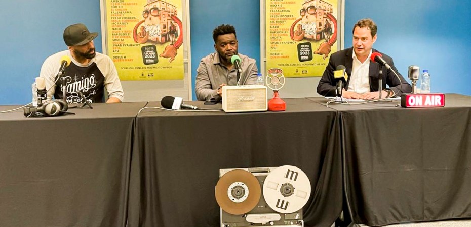 Este novedoso festival se ha presentado durante la emisión de un programa radiofónico desde el Centro Polivalente Abogados de Atocha, una retransmisión dirigida por el conocido rapero y locutor torrejonero de Radio Televisión Española, Frank T, al que asistieron como invitados el afamado rapero de Torrejón, El Chojin, como director artístico del festival e Ignacio Vázquez, alcalde de la ciudad.