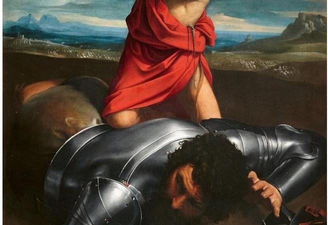 También llama la atención el cuadro de David decapitando a Goliat, una más donde se aprecian los detalles de la indumentaria de los personajes, y es que las ricas telas probablemente aluden a los tejidos de Bolonia, que era por entonces un gran centro de producción sedero.