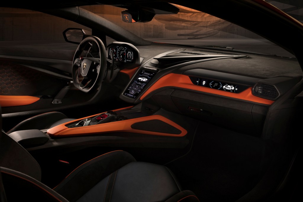 El coche presenta una disposición sin precedentes: el motor atmosférico V12 de 6,5 litros montado en posición central, se complementa con tres motores eléctricos, uno de los cuales está integrado en la nueva caja de cambios de doble embrague y ocho velocidades montada transversalmente y situada por primera vez detrás del motor de combustión. En lo que ha sido tradicionalmente el túnel de transmisión desde los tiempos del Countach, hay en su lugar una batería de iones de litio, que alimenta los motores eléctricos.