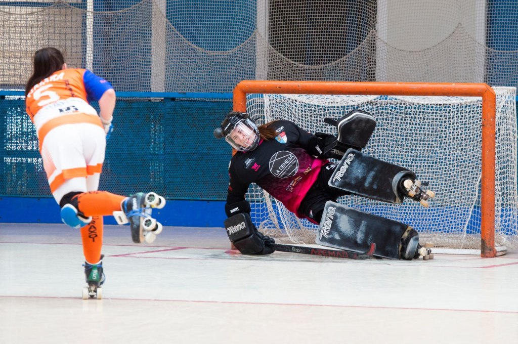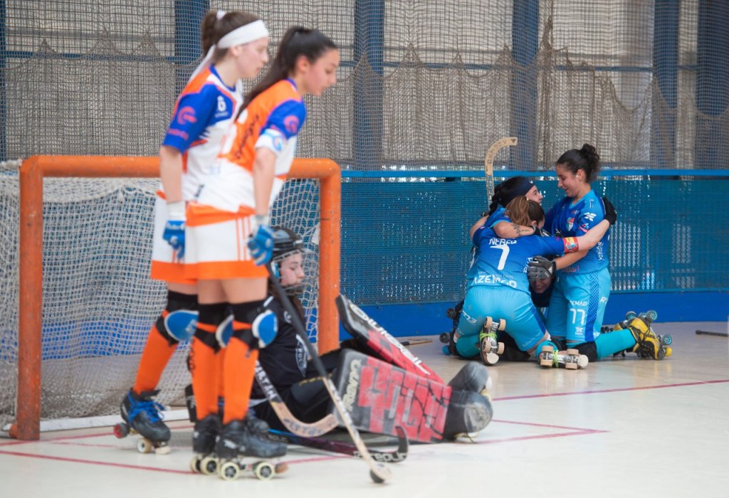 misma presión de las visitantes pero que sorprendentemente no se veía reflejado en el número de faltas señaladas en su contra sino que al contrario se iban casi todas para el bando local que se empezaba a cargar de faltas e incluso superar a las santiaguesas y acercarse peligrosamente a la décima. Pero, antes llegó en un robo de bola en el minuto 11, en media pista a cargo de la jovencísima Nerea Sánchez que patinó en velocidad batiendo con una gran definición a la portera visitante, estableciendo el 2-1 que daba la vuelta al marcador.