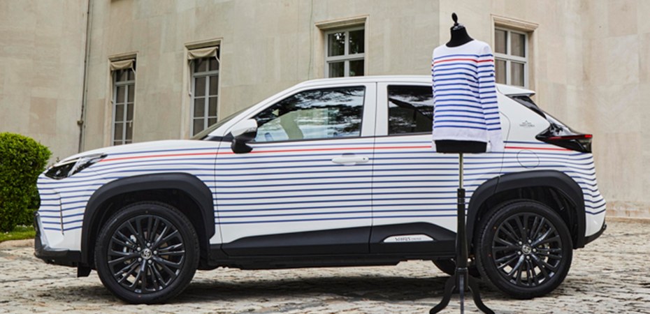 El diseño de la colaboración está inspirado en el modelo de marinière Naval con una raya roja de Saint James, uno de los diseños más antiguos y conocidos de la marca, que vistió de rayas marineras a muchos personajes célebres. En esta ocasión, como en la marinière, el diseño del vinilado del nuevo Toyota Yaris Cross by Saint James está compuesto por rayas marineras azules que se combinan con un espacio blanco en la parte superior e inferior, y que contrastan con una única raya roja, creando uno de los diseños más reconocidos de la firma francesa. A lo largo de sus más de 130 años de existencia, la marca Saint James ha pasado de ser un taller que suministraba jerséis para abrigar a los pescadores bretones que trabajaban en mares a veces muy duros, a crear la icónica camisa marinera o bretona. A pesar de los cambios que se han producido a lo largo de estos años, la marca se mantiene anclada en su herencia de artesanía del viejo mundo convirtiéndose en un emblema de la moda francesa. Toyota Yaris Cross by Saint James es la cuarta colaboración con un diseñador desde que se lanzara el todocamino híbrido eléctrico de Toyota.