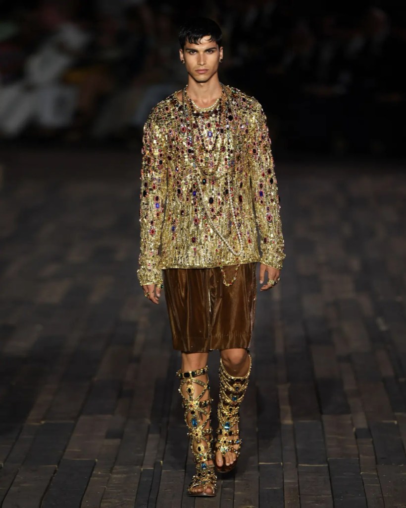 En esta ocasión, el desfile tuvo lugar en Apulia (Plugia) al sur de Italia. El dúo compuesto por Domenico Dolce y Stefano Gabbana desplazó hasta allí a lo más destacado del panorama de la moda internacional y a celebrities para celebrar el desfile de su colección masculina de Alta Sartoria para el Otoño- Invierno 2024. Con este desfile, los diseñadores sicilianos han querido rendir homenaje a los artesanos y recuperar viejos oficios de la costura.