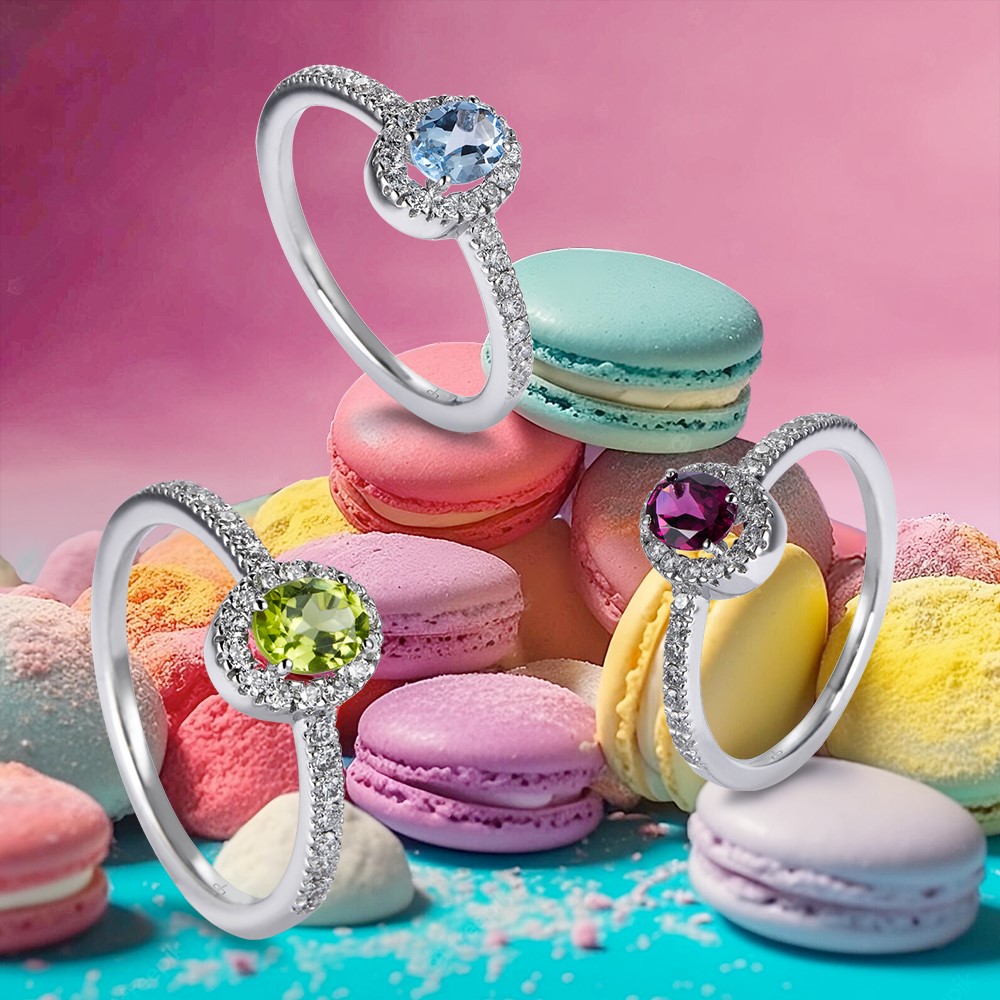 En CARAMELO, las piedras preciosas como el Peridoto verde lima, las notas frambuesa del granate o el azul profundo del Topacio London se transforman en apetecibles y deliciosas golosinas diseñadas para lucir solas o combinar entre sí jugando con sus diferentes tamaños y formas.