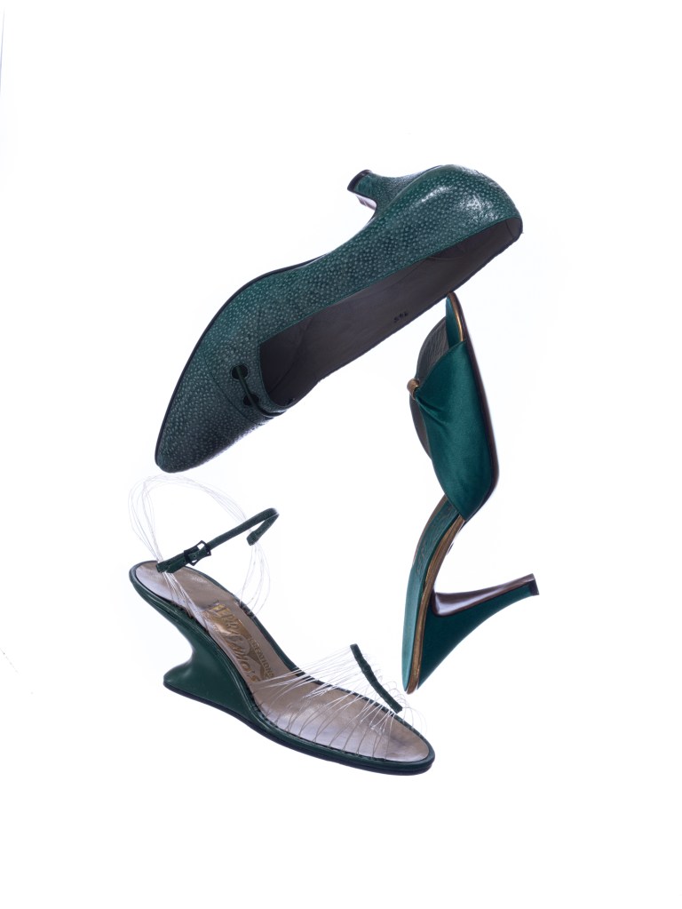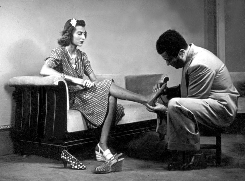 Sección IX: Zapatos y pies de famosos. La última sección de la exposición se basa en una conexión invisible entre los zapatos diseñados por el «zapatero de los sueños» y quienes los llevaban: estrellas de cine, aristócratas y la jet set internacional. Sus imágenes se muestran con los zapatos que encargaron a Salvatore, que medía personalmente los pies de sus clientes y tomaba nota de sus idiosincrasias, estilos favoritos y gustos personales.