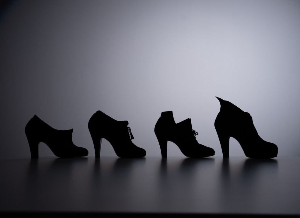 Sección IV: Equilibrio y anatomía. Esta sección está dedicada a los estudios de Salvatore sobre la estructura y la mecánica del pie y a su capacidad para desarrollar nuevas soluciones basadas en la distribución del peso corporal, como un ingeniero o un arquitecto. Presenta una colección de hormas de madera para zapatos, fotos con sus clientes y su rica biblioteca personal.